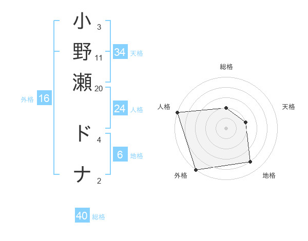 小野瀬 ドナさんの外格は16画の5点!