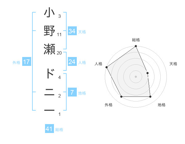 小野瀬 ドニーさんを姓名の画数から五運を鑑定