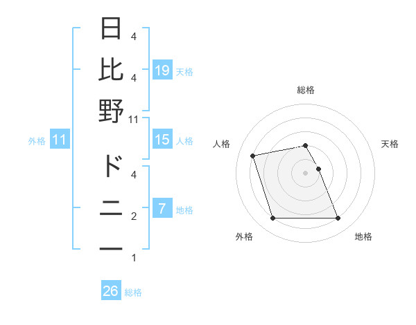 日比野 ドニーさんの外格は11画の4点!