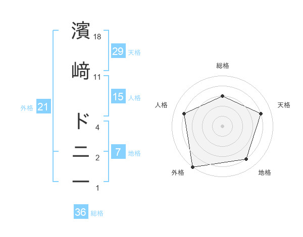 濱﨑 ドニーさんを姓名の画数から五運を鑑定