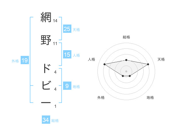 網野 ドビーさんを姓名の画数から五運を鑑定