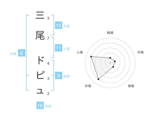 三尾 ドピュさんを姓名の画数から五運を鑑定