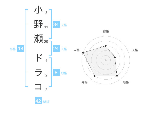 小野瀬 ドラコさんを姓名の画数から五運を鑑定