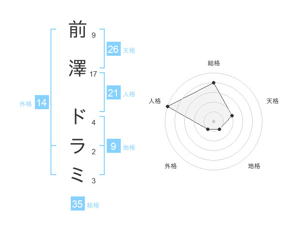 前澤 ドラミさんの総格は35画の4点!