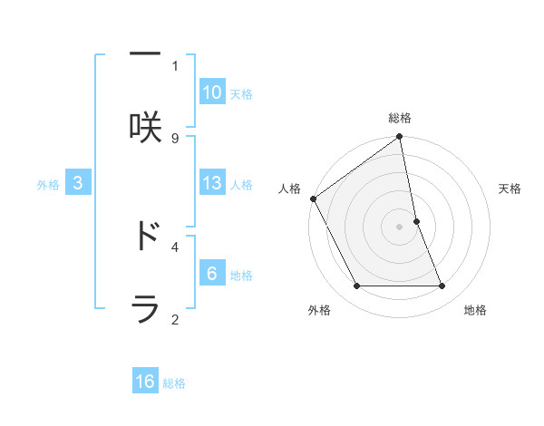 一咲 ドラさんを姓名の画数から五運を鑑定