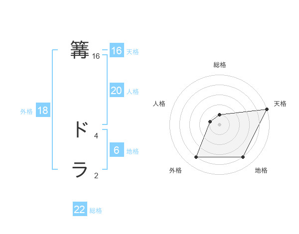 篝 ドラさんの天格は16画の5点!