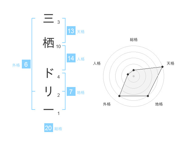 三栖 ドリーさんの天格は13画の5点!