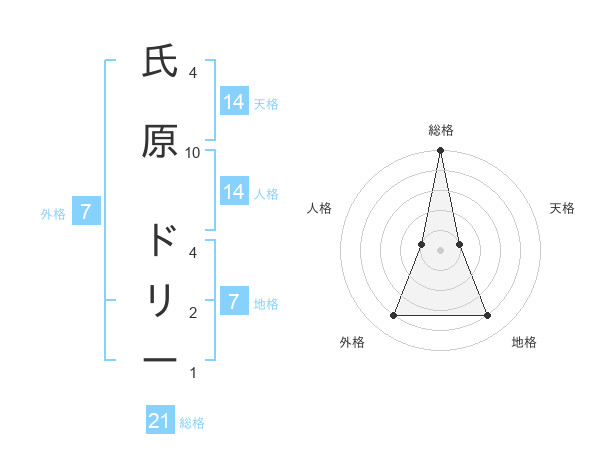 氏原 ドリーさんの総格は21画の5点!