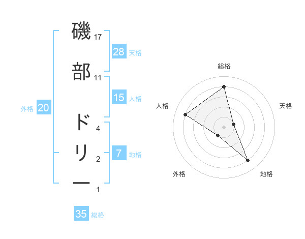 磯部 ドリーさんを姓名の画数から五運を鑑定
