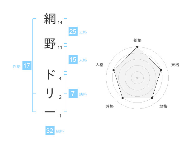 網野 ドリーさんを姓名の画数から五運を鑑定