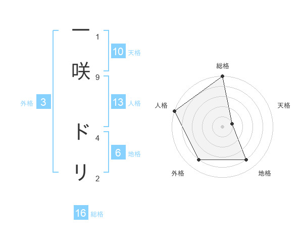 一咲 ドリさんの総格は16画の5点!