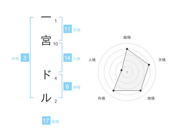 一宮 ドルさんの総格は17画の4点!