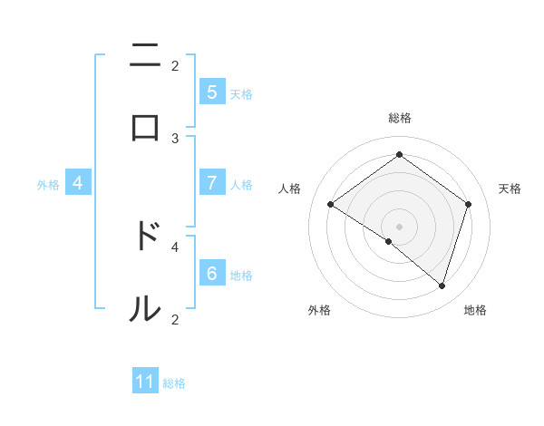 二口 ドルさんの天格は5画の4点!