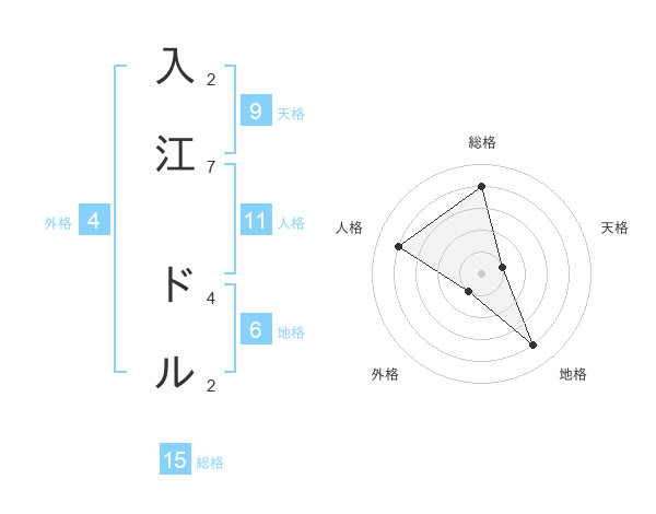 入江 ドルさんの総格は15画の4点!
