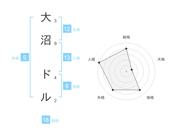 大沼 ドルさんを姓名の画数から五運を鑑定