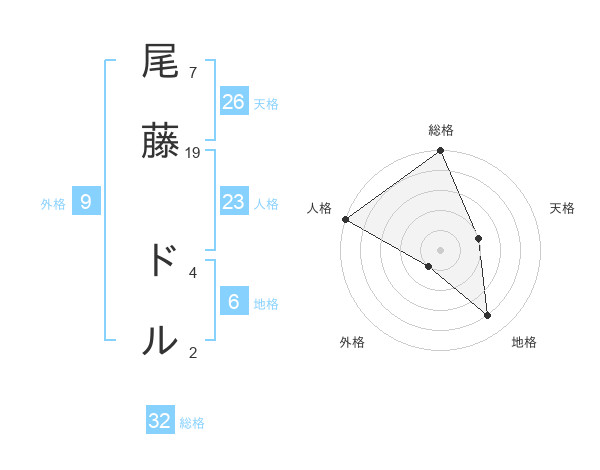 尾藤 ドルさんを姓名の画数から五運を鑑定