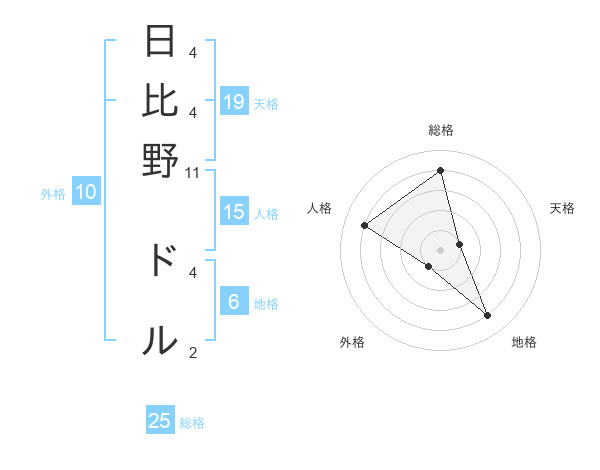 日比野 ドルさんを姓名の画数から五運を鑑定