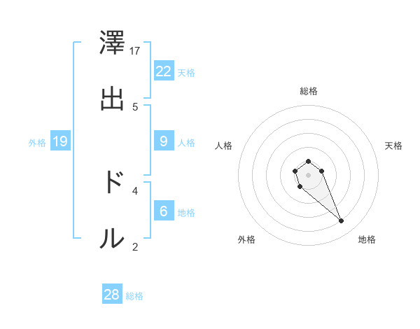 澤出 ドルさんを姓名の画数から五運を鑑定