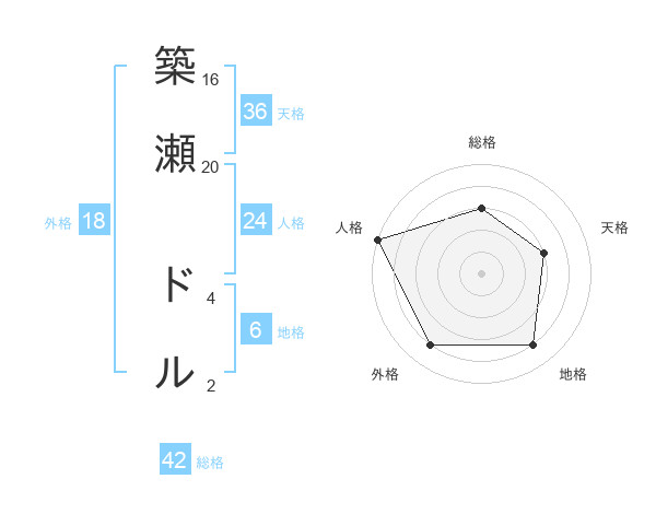 築瀬 ドルさんの総格は42画の3点!