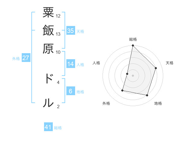 粟飯原 ドルさんを姓名の画数から五運を鑑定
