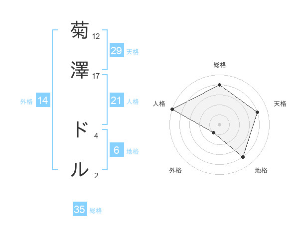 菊澤 ドルさんの総格は35画の4点!