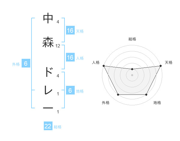 中森 ドレーさんを姓名の画数から五運を鑑定