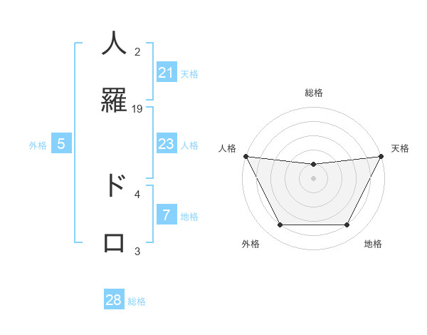 人羅 ドロさんの天格は21画の5点!