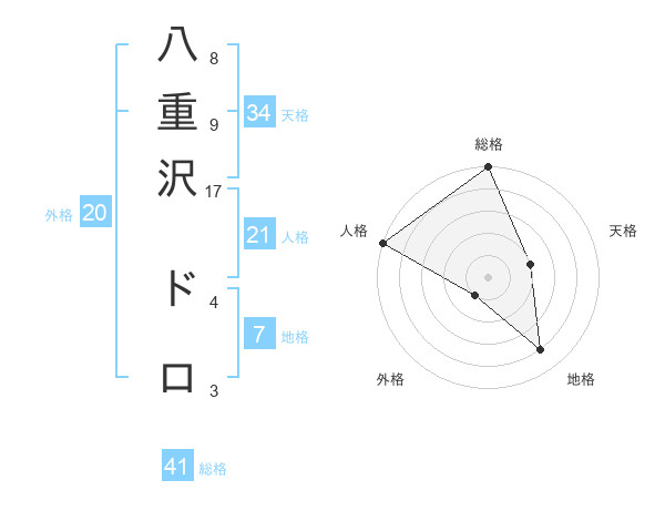 八重沢 ドロさんを姓名の画数から五運を鑑定