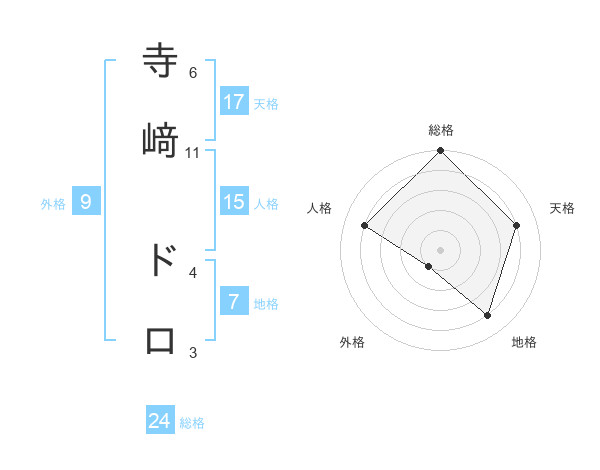 寺﨑 ドロさんの天格は17画の4点!