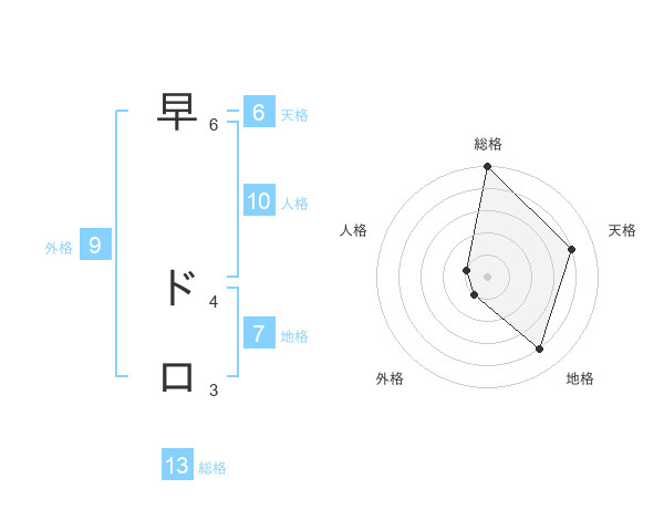 早 ドロさんの総格は13画の5点!