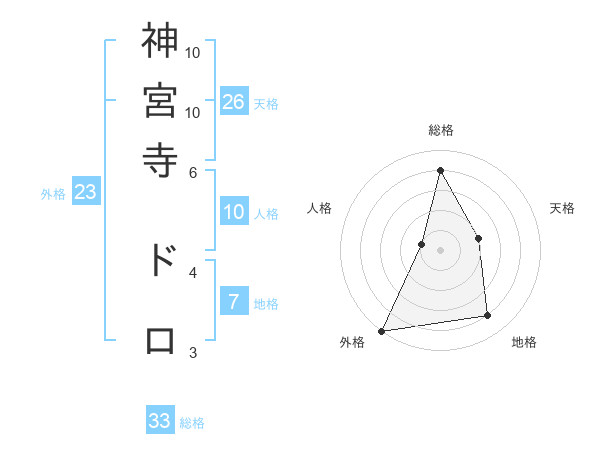 神宮寺 ドロさんを姓名の画数から五運を鑑定