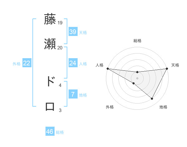 藤瀬 ドロさんを姓名の画数から五運を鑑定