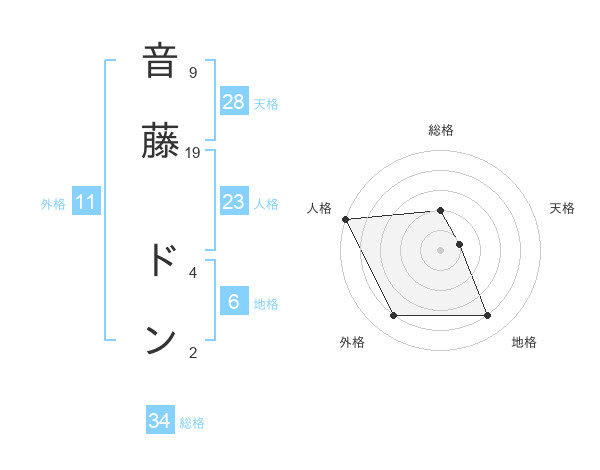 音藤 ドンさんの総格は34画の2点!