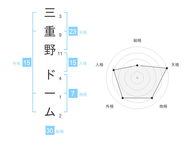三重野 ドームさんを姓名の画数から五運を鑑定