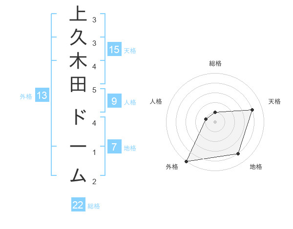 上久木田 ドームさんを姓名の画数から五運を鑑定