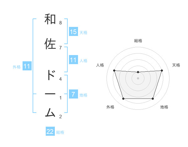 和佐 ドームさんの総格は22画の1点!