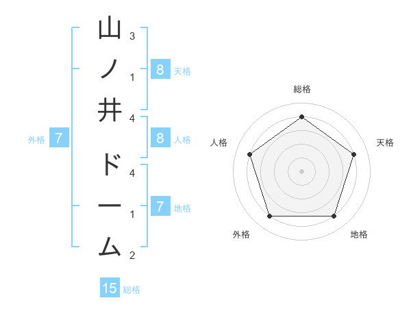 山ノ井 ドームさんの総格は15画の4点