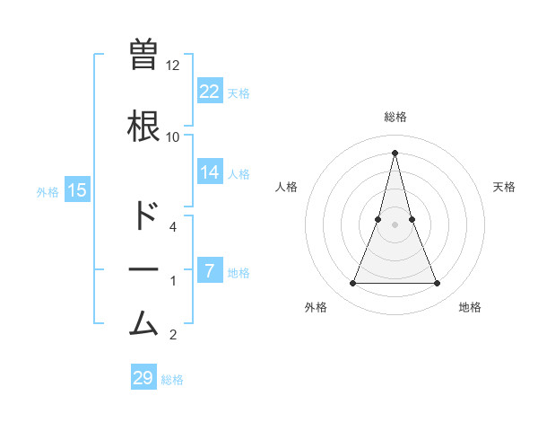 曽根 ドームさんを姓名の画数から五運を鑑定