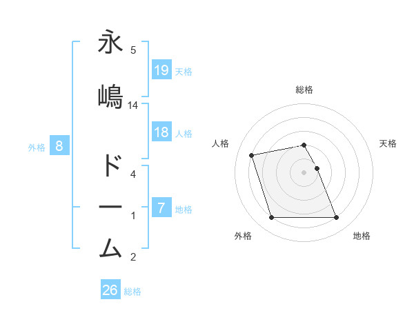 永嶋 ドームさんの総格は26画の2点!