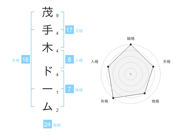茂手木 ドームさんを姓名の画数から五運を鑑定