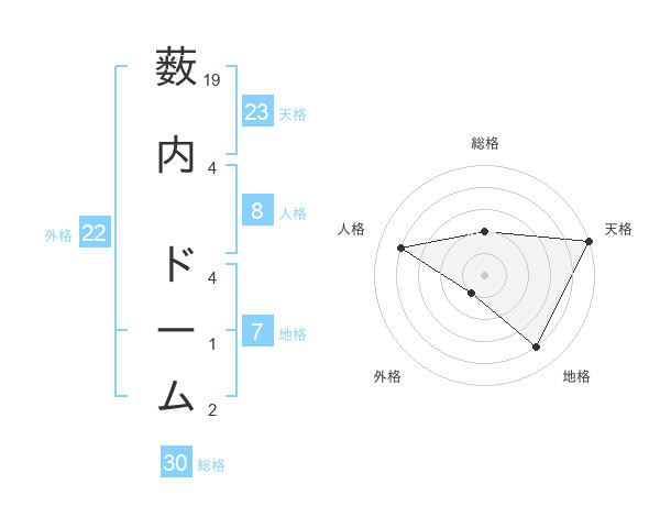 薮内 ドームさんを姓名の画数から五運を鑑定