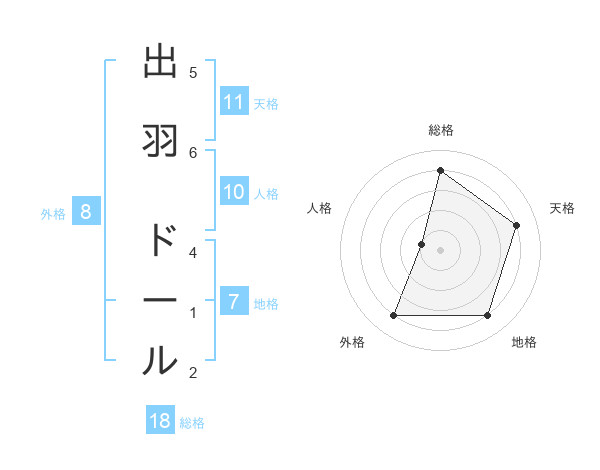 出羽 ドールさんの天格は11画の4点!
