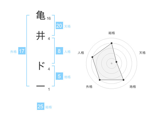亀井 ドーさんの地格は5画の4点!