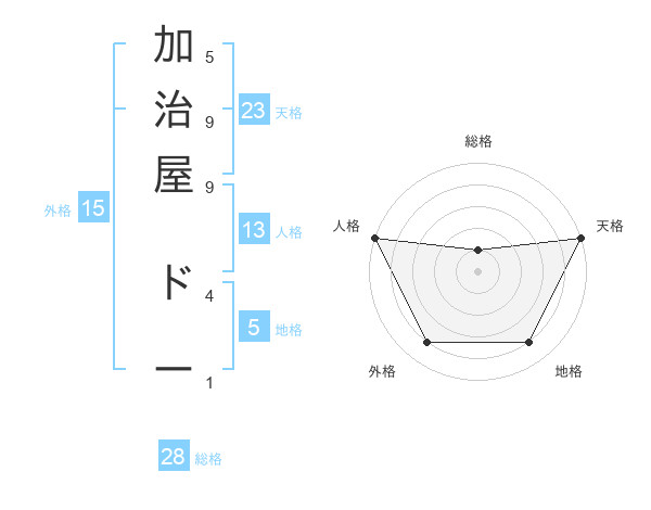 加治屋 ドーさんを姓名の画数から五運を鑑定