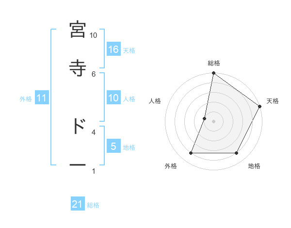 宮寺 ドーさんの総格は21画の5点!