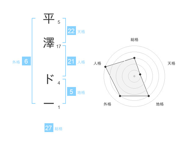平澤 ドーさんを姓名の画数から五運を鑑定