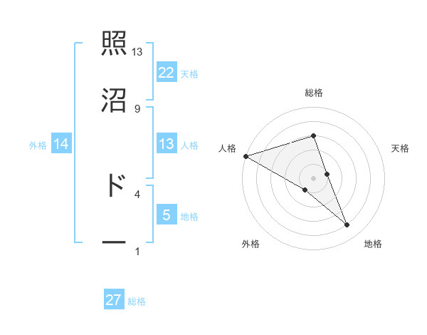 照沼 ドーさんを姓名の画数から五運を鑑定