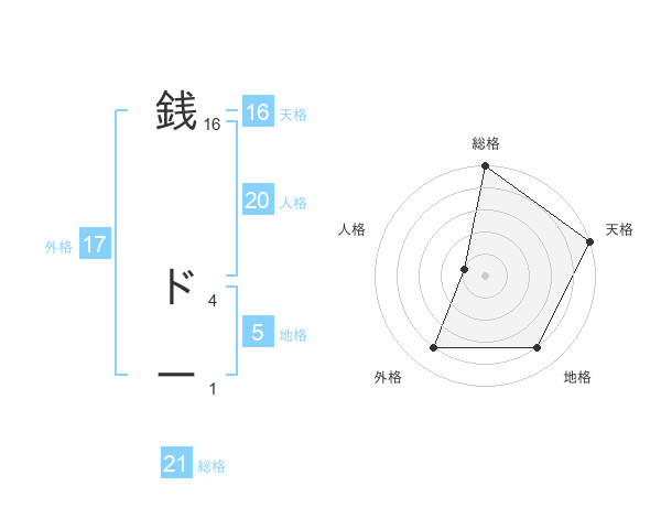 銭 ドーさんの総格は21画の5点!