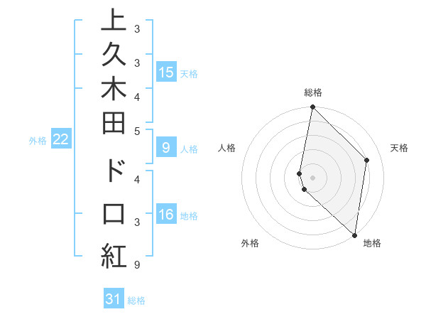 上久木田 ド口紅さんの総格は31画の5点