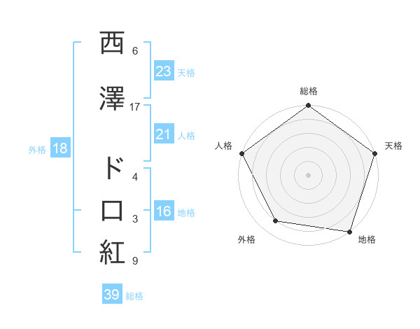西澤 ド口紅さんの天格は23画の5点!